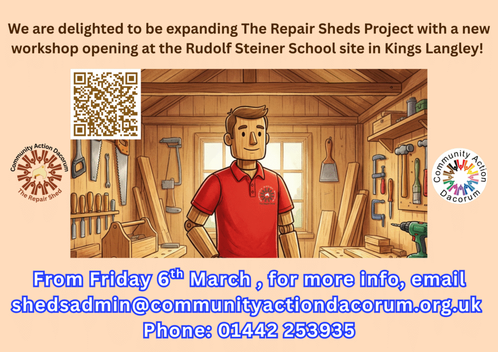 Email: shedsadmin@communityactiondacorum.org.uk Phone: 01442 253935